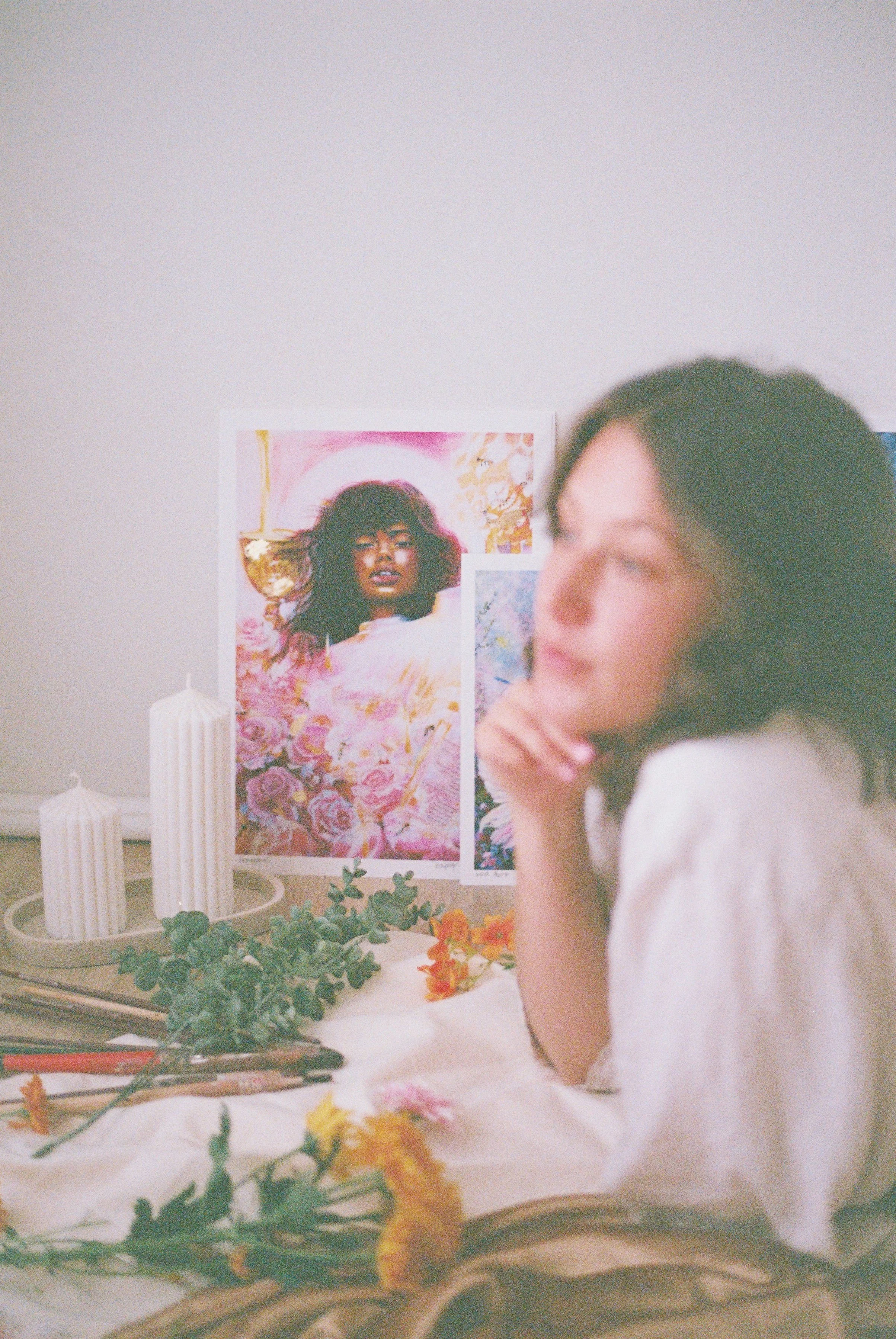 I create feminine worlds woven from paint and prose, where magic and mystery meet.