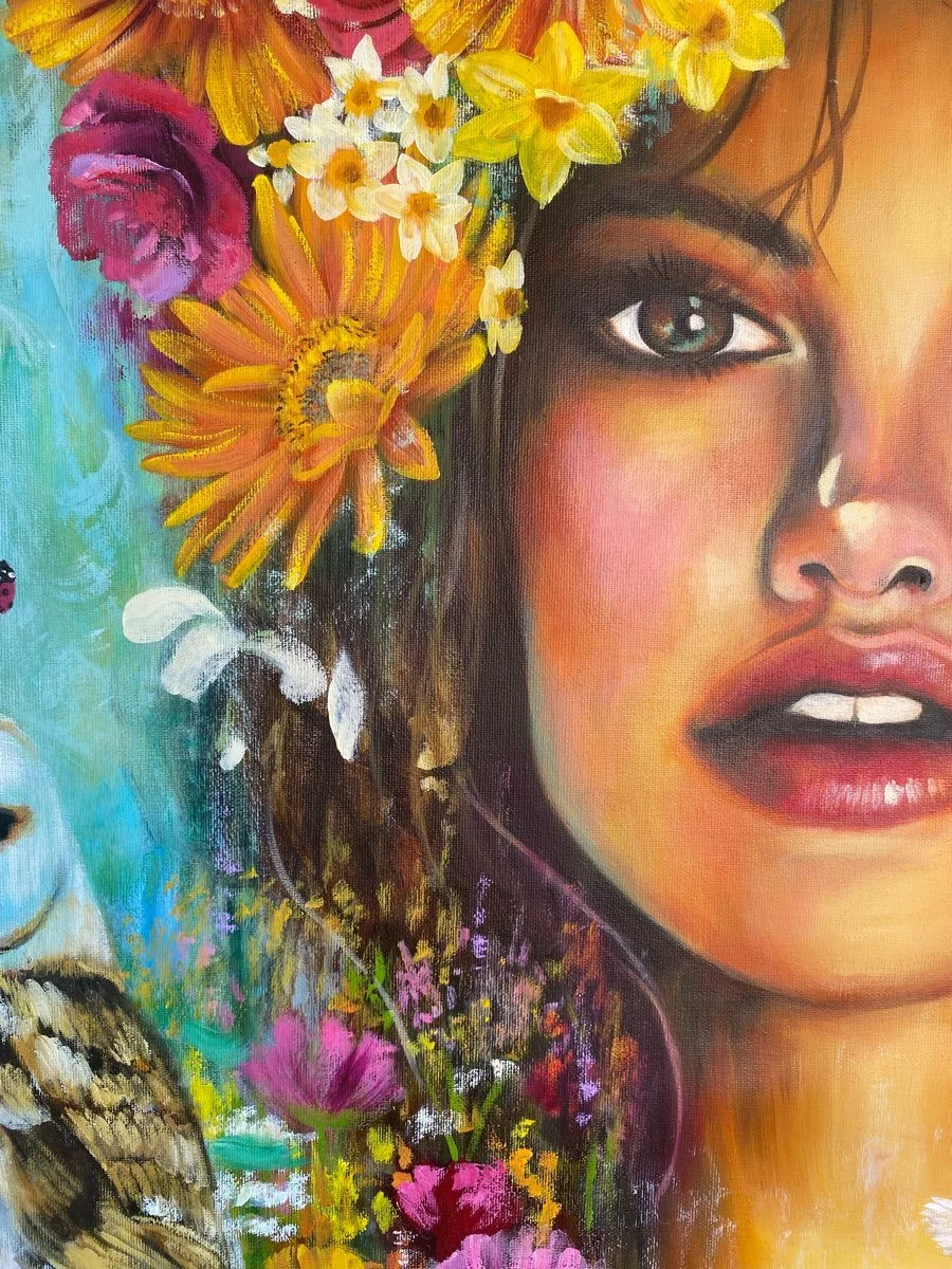 Iām Kayleigh, an artist, writer, mother, and a hopeless dreamer. I create feminine worlds woven from paint and prose, where magic and mystery meet. My work is an invitation to remember your own inner fire, your softness, your wildness, and your wisdom.