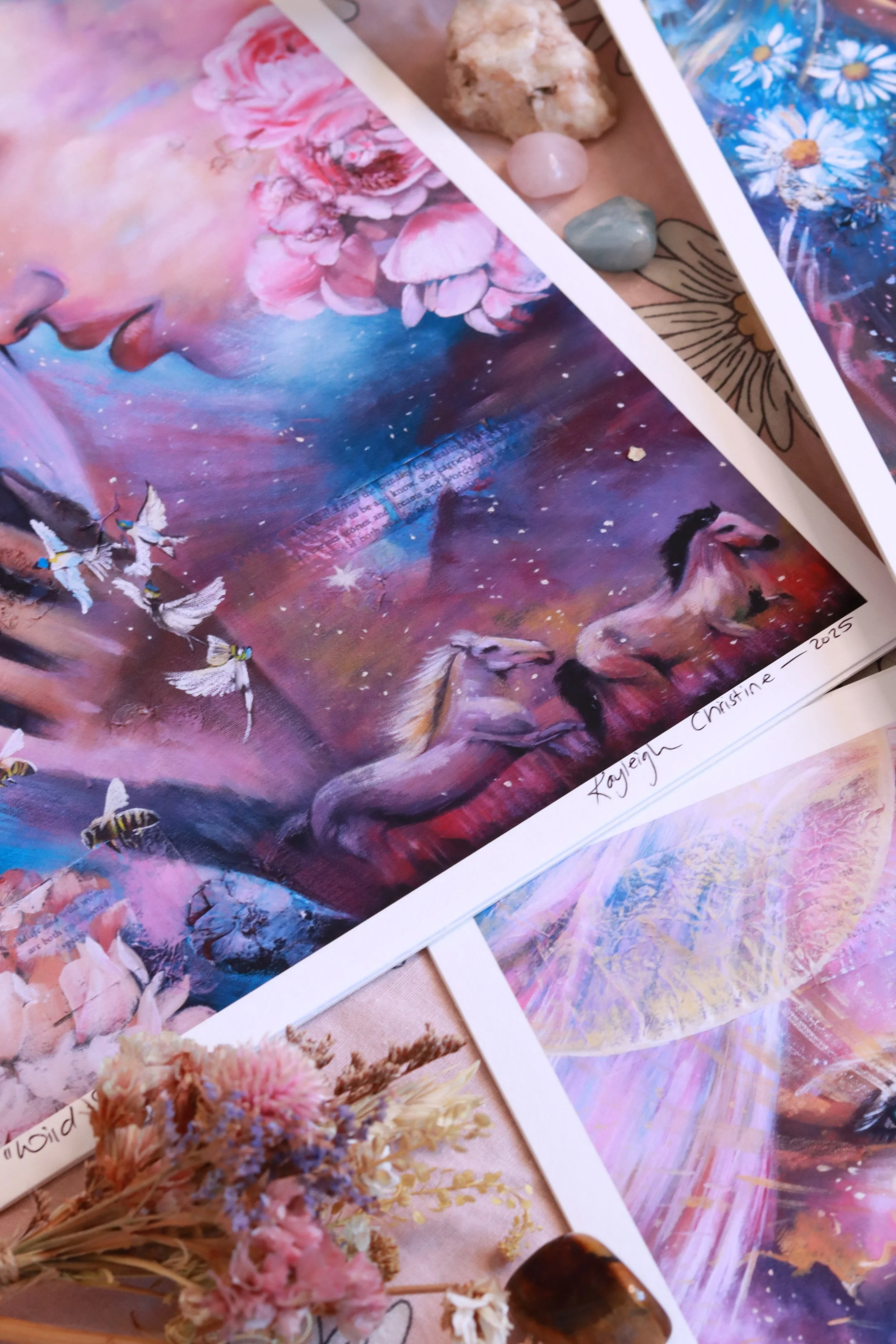Soft echoes of brush on canvas. Pigment and light weaving their quiet spells. Each piece a small prayer. Hand-made, mother-made, born of wonder. From my hands, to your heart.